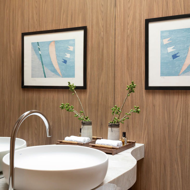 O brise soleil protege como uma película dando forma ao sistema de rampas. Em frente ao estar pode se movimenta-lo ampliando a vista dentro e fora de acordo com a insolação.